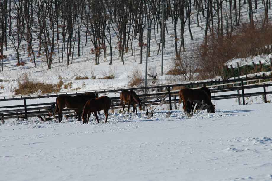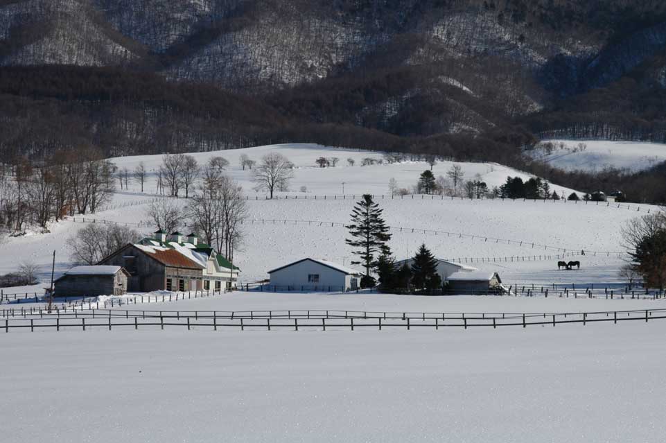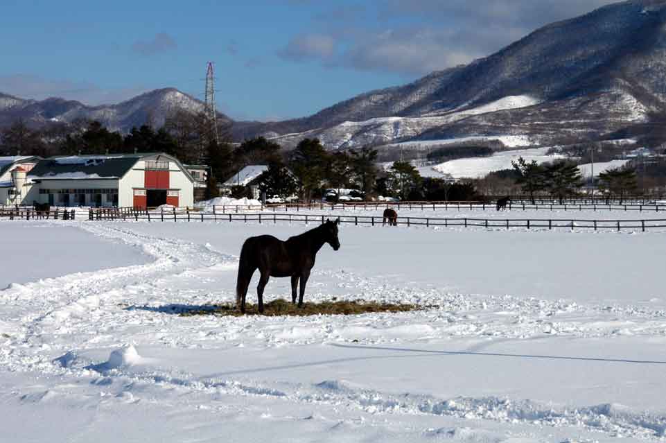ここも静内町と同様に積雪があり、広大な面積ではあるがサラブレッドの放牧はごく僅か