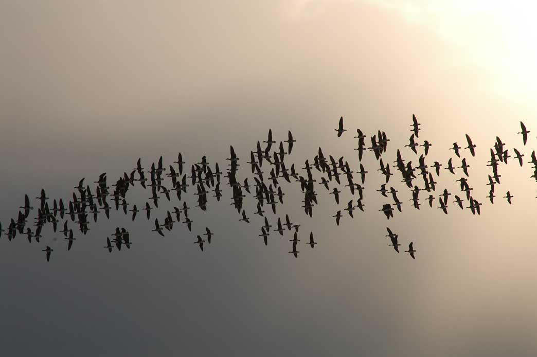 平成19年1月20日、苫小牧市ウトナイ湖へマガン観察に出かけた時のショットです。 マガン約330羽が周辺の畑で確認されました。 ウトナイ湖周辺で採食 まだ、降雪も少なく採食環境は良好 上空を何度か旋回し着地 300羽の編隊飛行 このまま静内へと移動してもらいたいもの 真上を通過する群れは迫力満点
