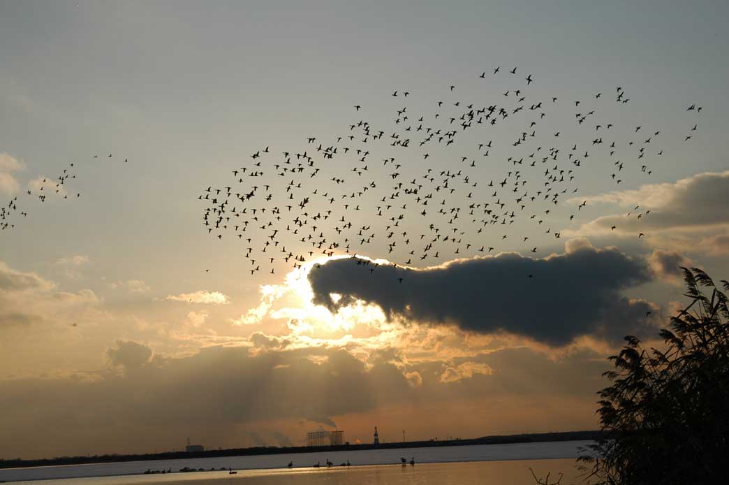 夕陽の浮かぶ沼面はいかにも苫小牧らしい風景