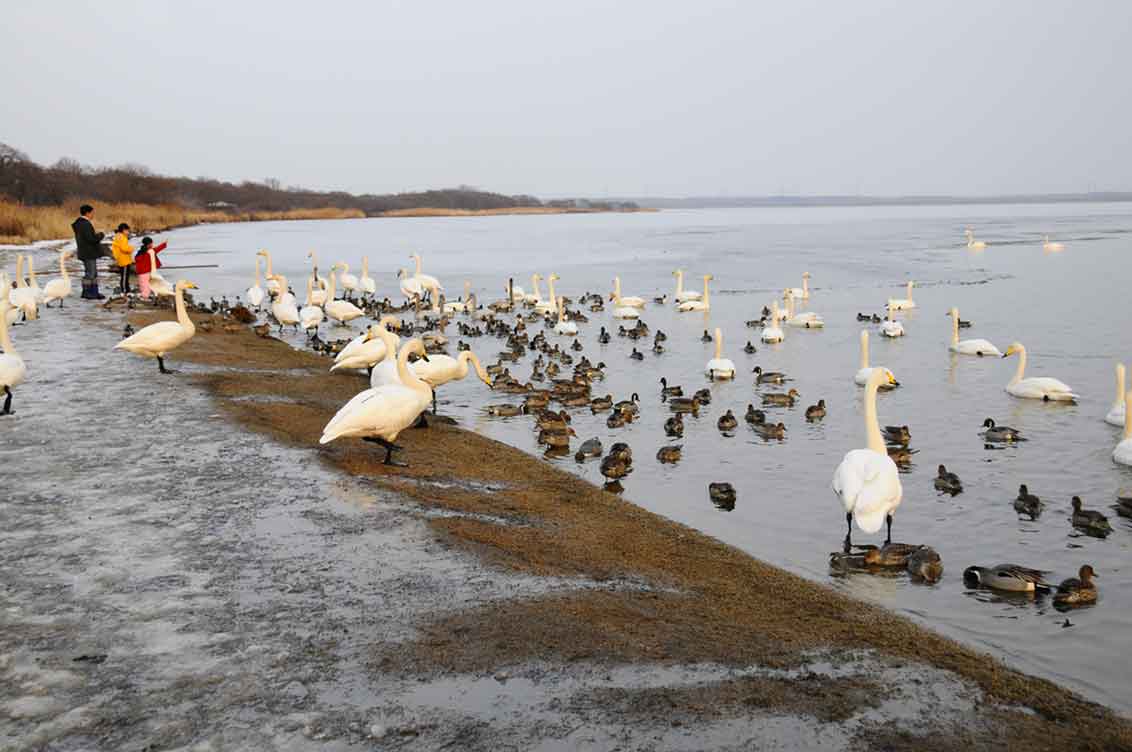 国道沿いのウトナイ湖では、台湾の観光客、家族連れで相変わらずに賑っていた。ここも完全結氷には至ってはいない