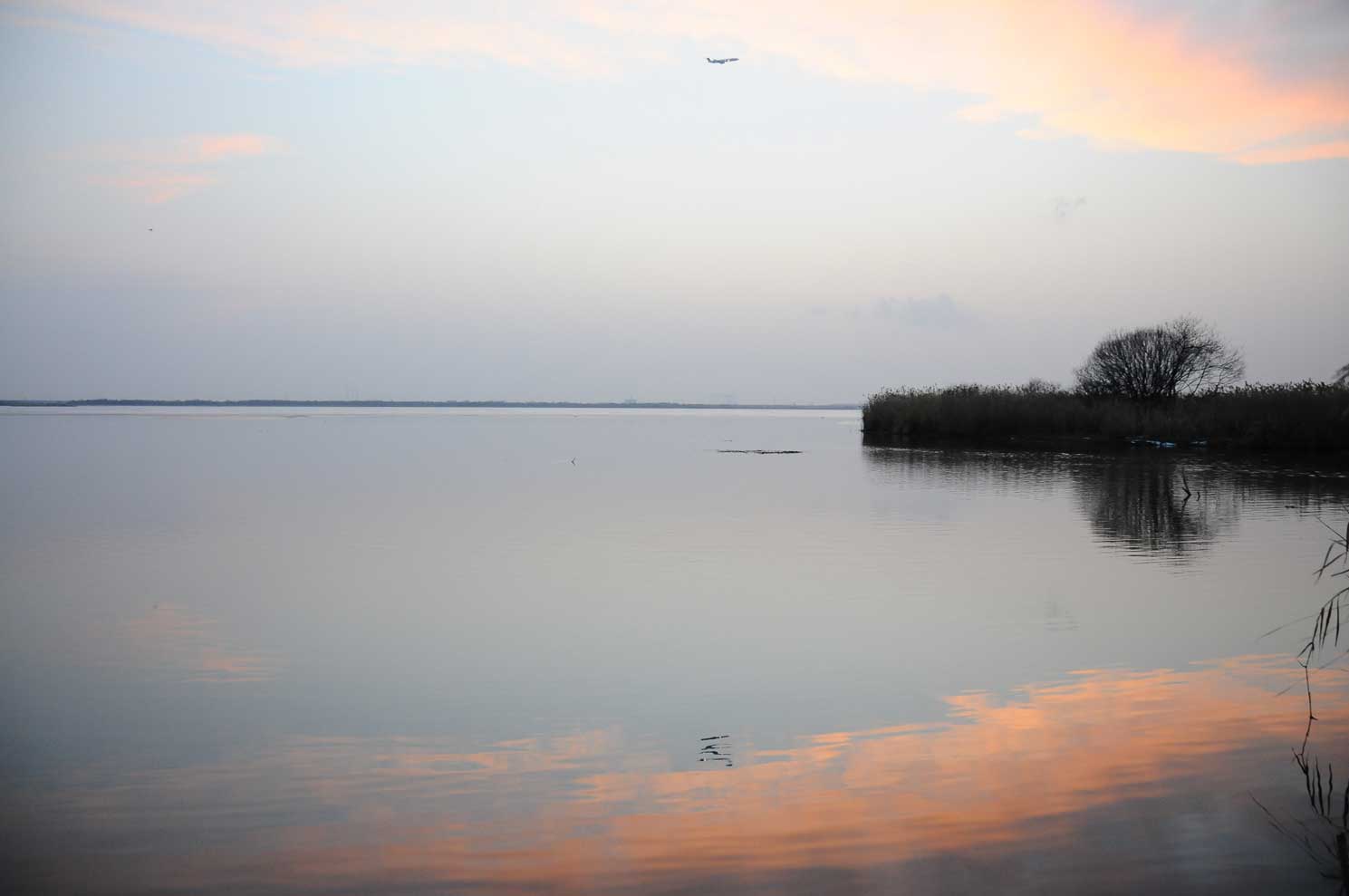 ねぐら入りを狙い午後5時まで待機したが、最後までマガンとは出会えなかった
