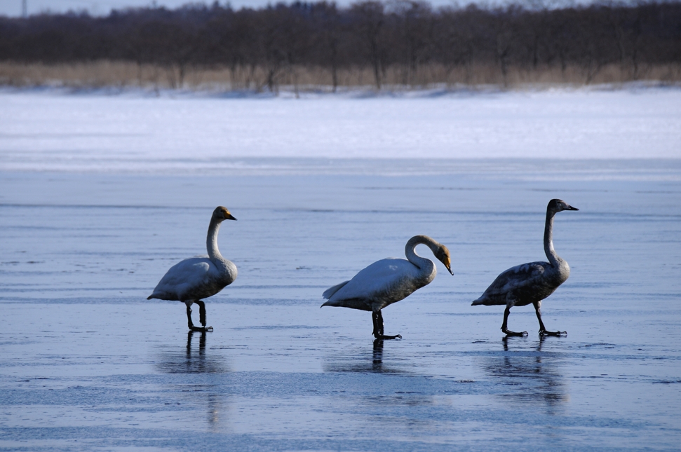 した。ウトナイ湖周辺、むかわ町周辺共に積雪量が25〜30p。また、ねぐらとなるウトナイ湖、鵡川も完全結氷で、生息条件