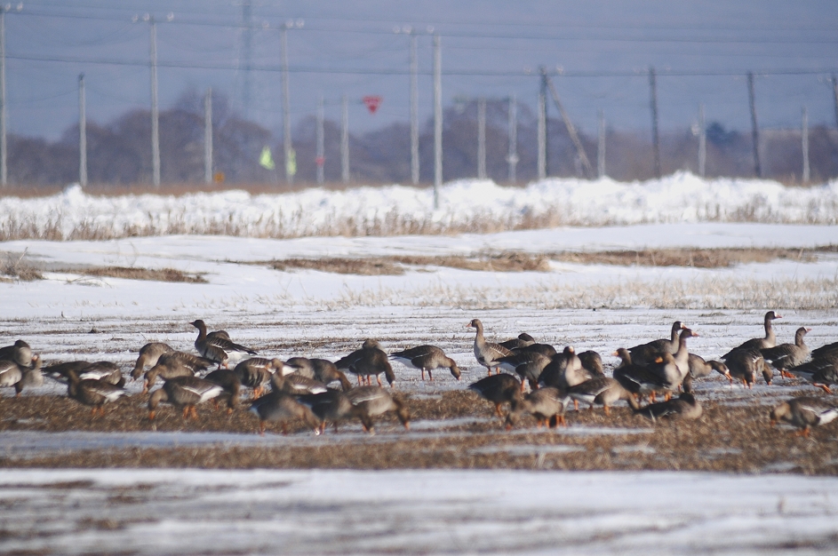 ○午前中、過去越冬した場所を中心に新ひだか町静内、新冠町でのマガン調査を行うがマガンは確認できず。