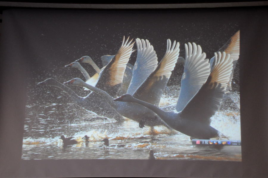 ⑷.全国白鳥写真展について~小原王明(新潟県) 昨年実施された写真展には全国から300点の応募があり、今回はその受賞作品を紹介 ⑸.白鳥をめぐる昨今の話題~阿部 學(東京都) 阿部副会長からは世界各地のハクチョウの話題 エネルギー政策の変遷は誤算の歴史?
