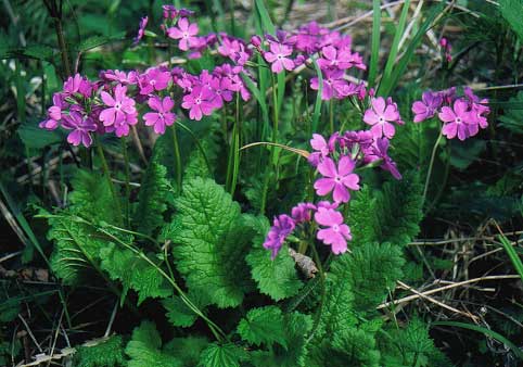 並木に負けじと花を咲かせるスモモの木 周辺の木立が美しいのも二十間道路の魅力 昔の小川がそっくり残って懐かしい。聞こえますか?せせらぎが ふと、見ると足元には可憐なサクラソウが 自然の恵みと悠久の大地に乾杯
