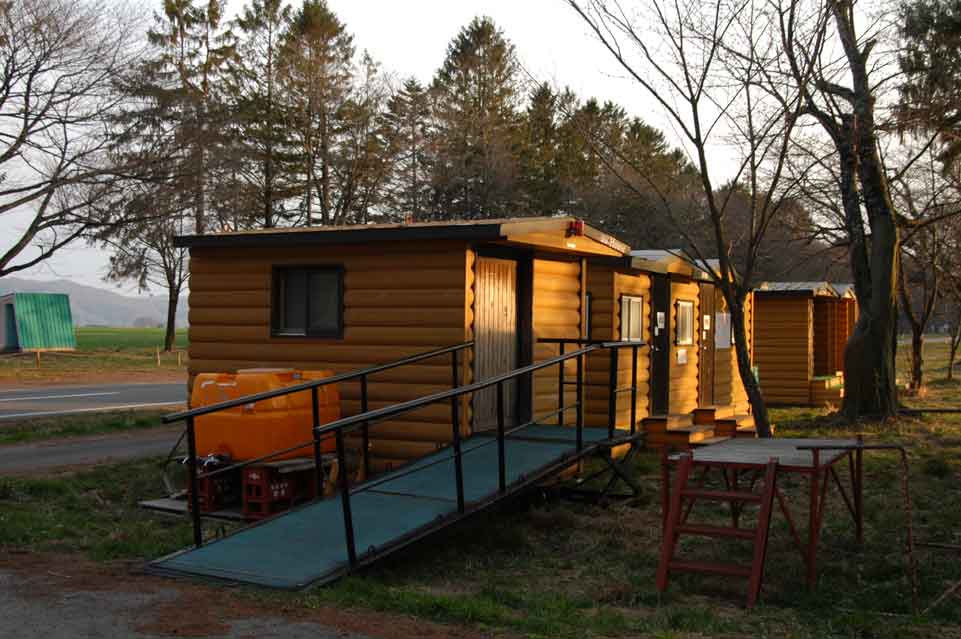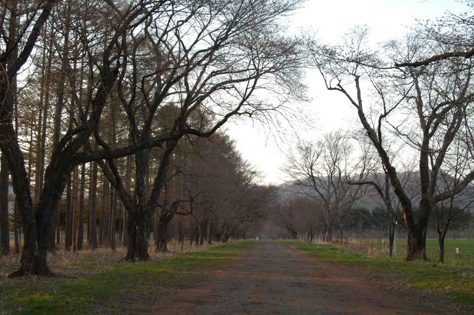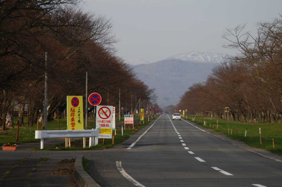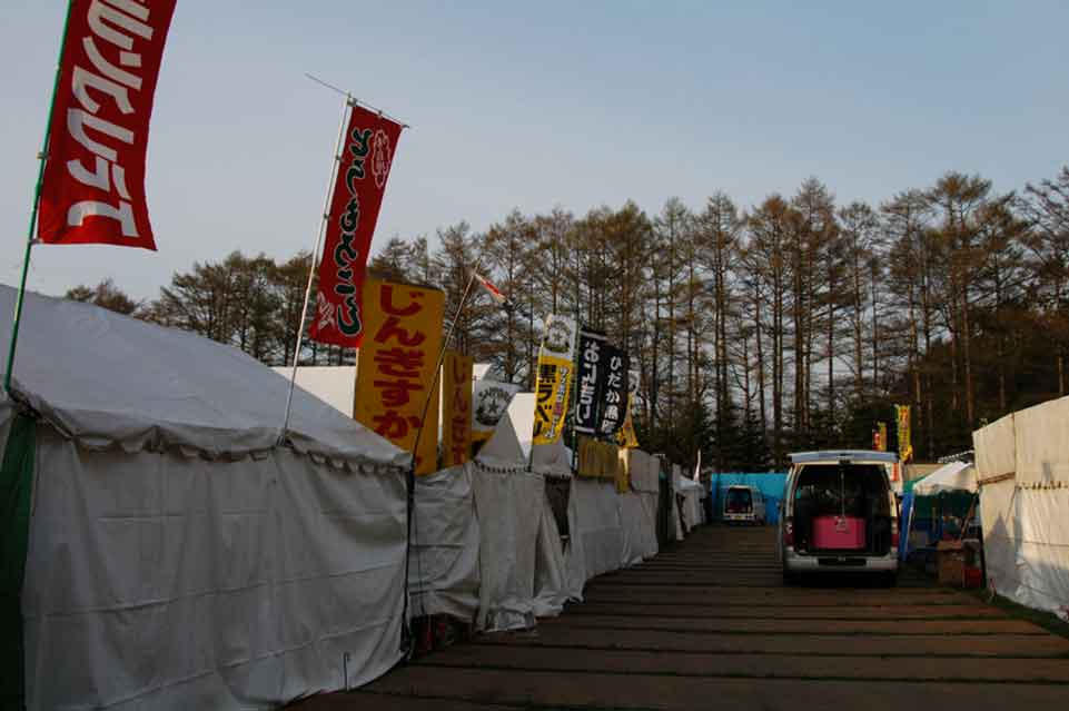 開花状態の早いものでこんな程度 記念碑前からの並木 今年は出店も牧草地内で出店 広い、清潔と毎年好評の移動水洗トイレ、今年は9セットを用意 今年は花のトンネルから出店が撤退、のんびりと散歩が 緑もそこそこに濃くなってきた