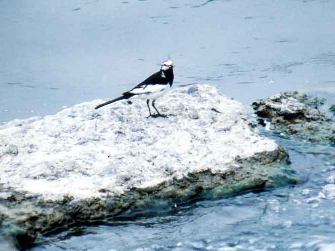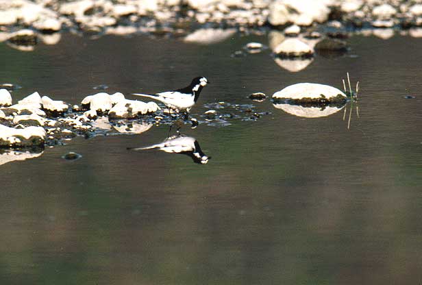 セグロセキレイは、なかなかのハンサムボーイ。静内川をはじ