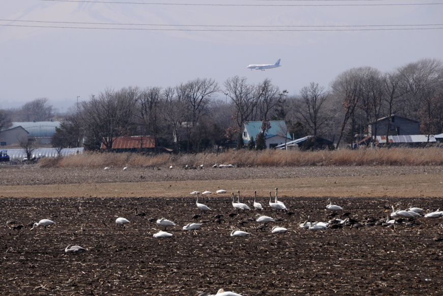 ウトナイ湖にねぐらをとり、採食場所としてこの周辺を利用する。
