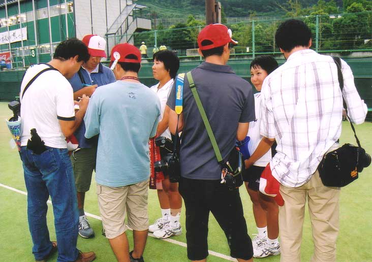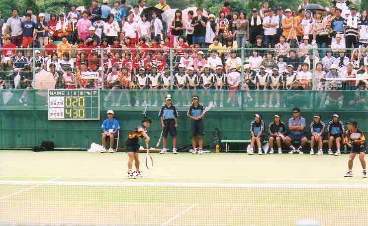 準優勝の信愛女短大付を堂々と撮影。この後、誰かが私のティーシャツに書いてあるロゴを目ざとく見つけ「札幌龍谷だぁ!」