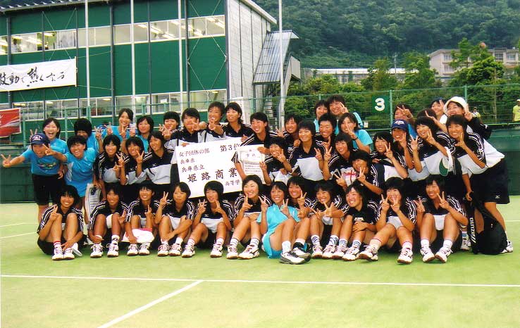 堂々の3位入賞だ姫路商業、みんなが弾けていて明るいなぁー。でも、アレッ、今治北の選手もいるよ…?
