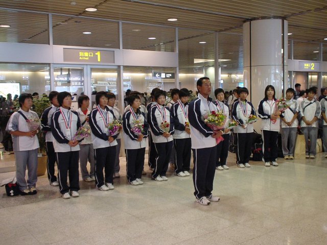 北海道に凱旋、千歳空港には大応援団が花束を持って待っていた