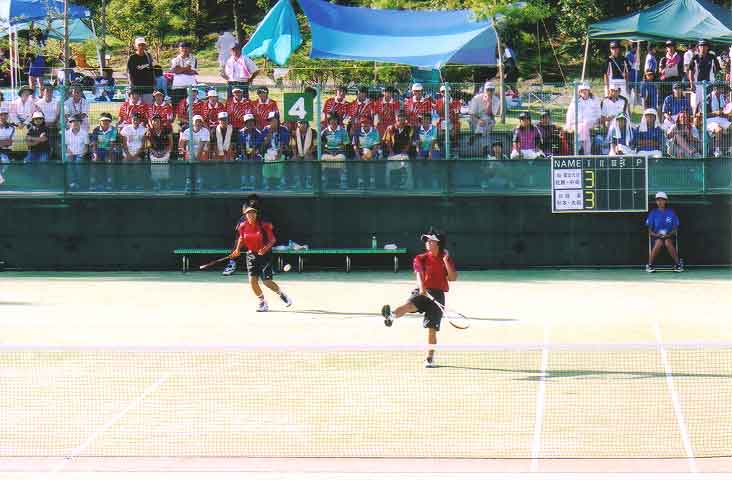 あの昨年度・全国中学校ソフトテニス大会個人戦チャンプ、杉本・大庭。さすがに完成度の高いプレーを見せた