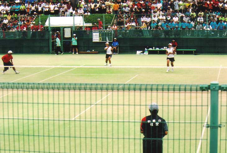 第一ゲーム、エース対決となった第一試合、谷岡・渡辺が第一セットこそ接戦になつたものの、後