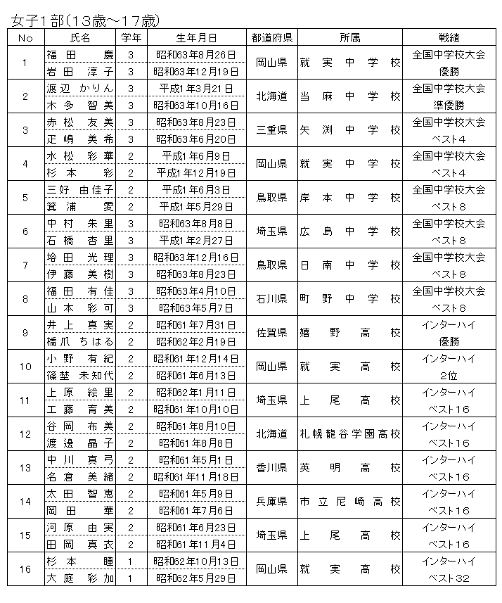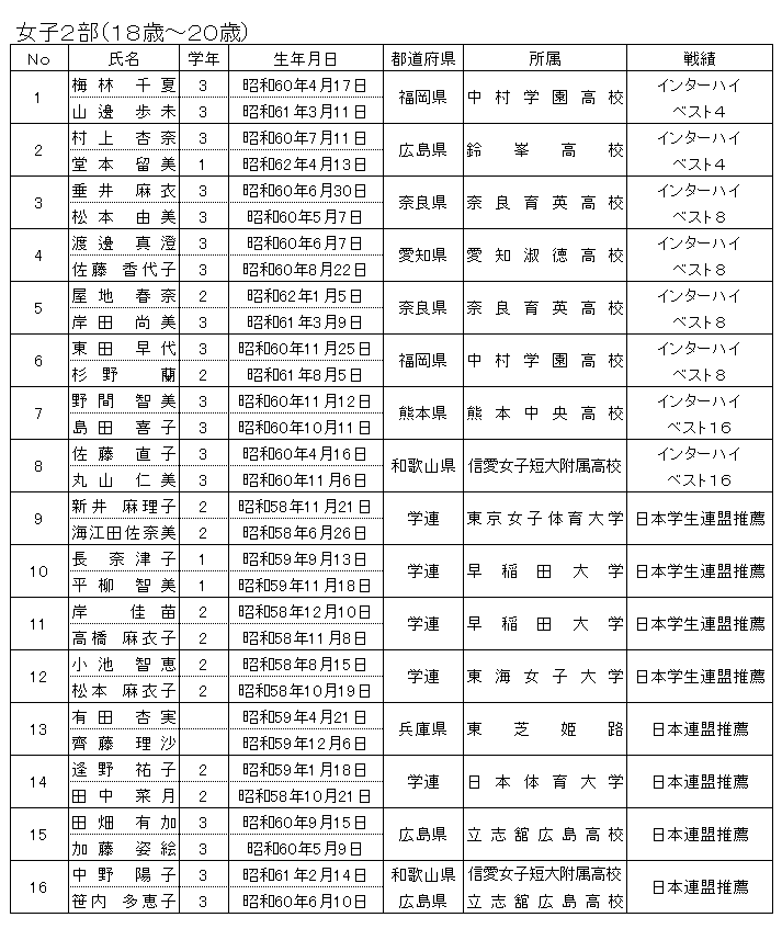 大庭 彩加(岡山県就実高) B−2 小野 有紀(岡山県就実高)