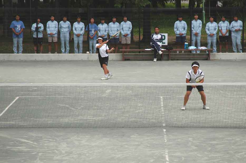 一セットを落としたものの、ここぞと言う時のストローク、シュート、ボレー等に龍谷ペアが勝っており、