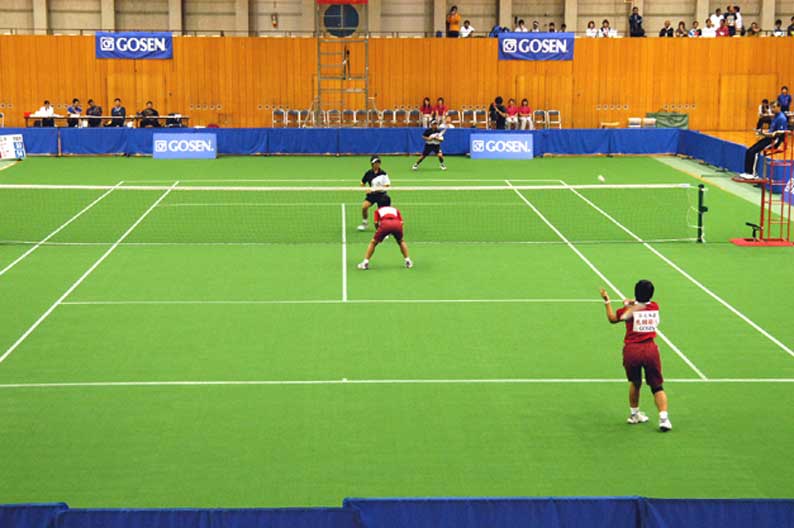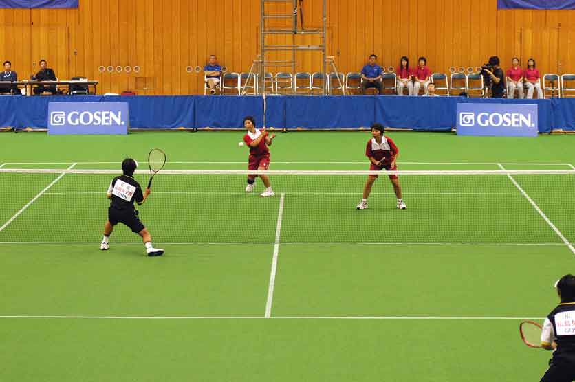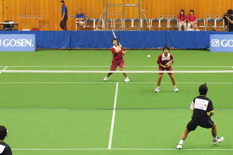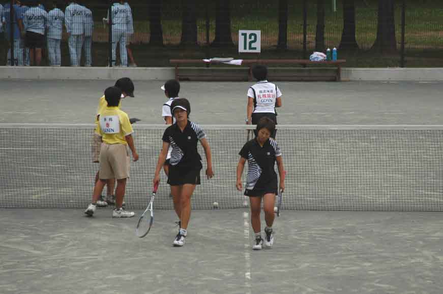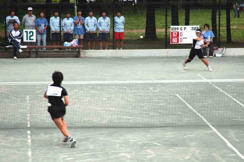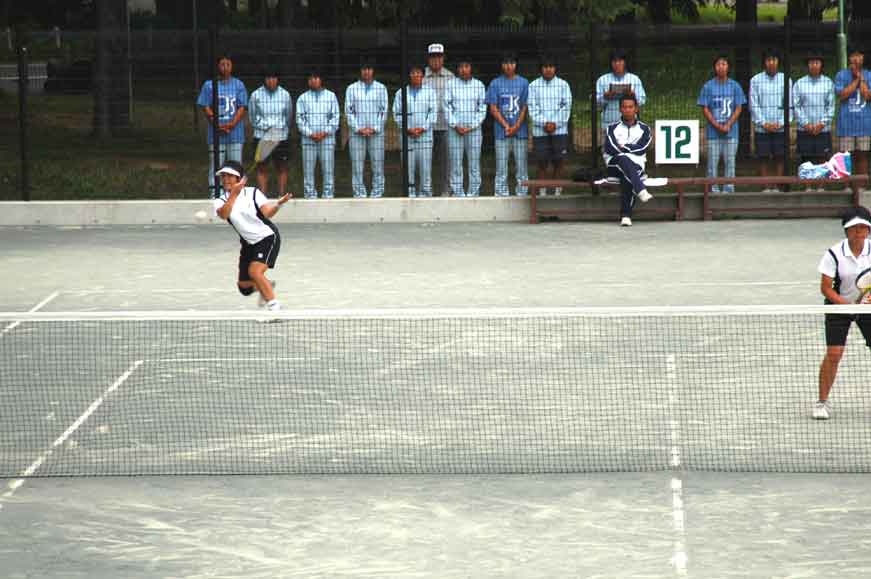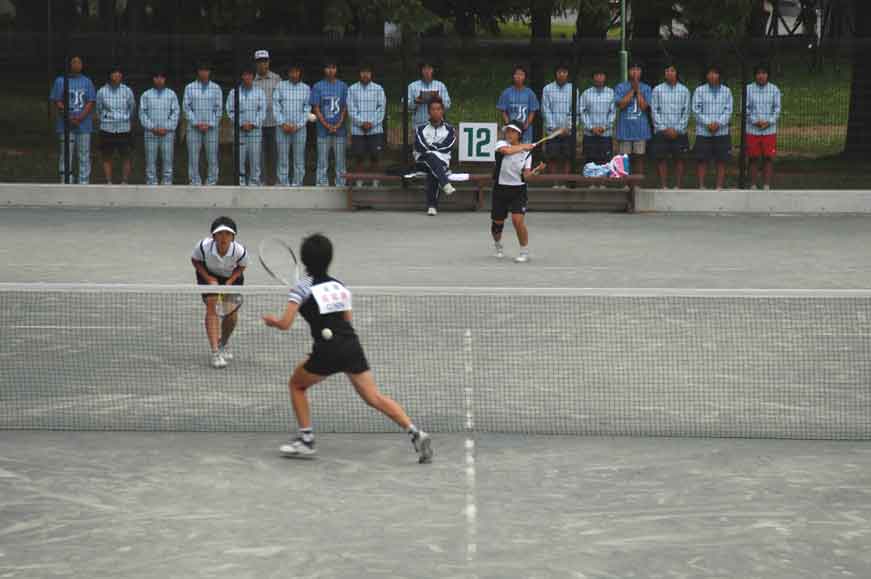 合内容。新谷・藤井のカットサーブ、そして新谷の優れたバックなど流石に伝統ある広島女子商業と思わ