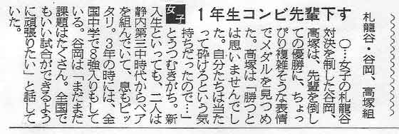 選手権大会は札幌龍谷学園高校が団体戦、6年連続21度目の優勝で幕を閉じたが、 この時