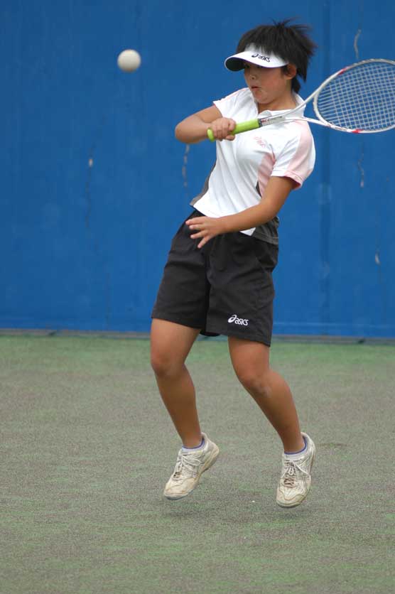 後衛の山崎はミスのない安定したプレーが身上。ストローク、シュートのパワーが欲しい