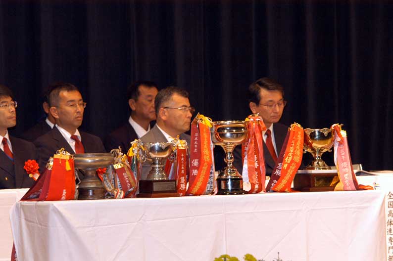優勝カップ左から団体戦が三個、そして個人戦