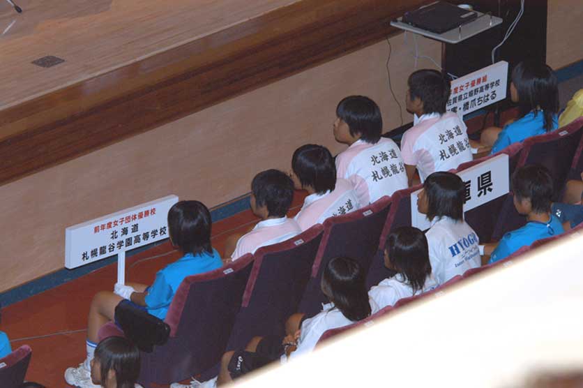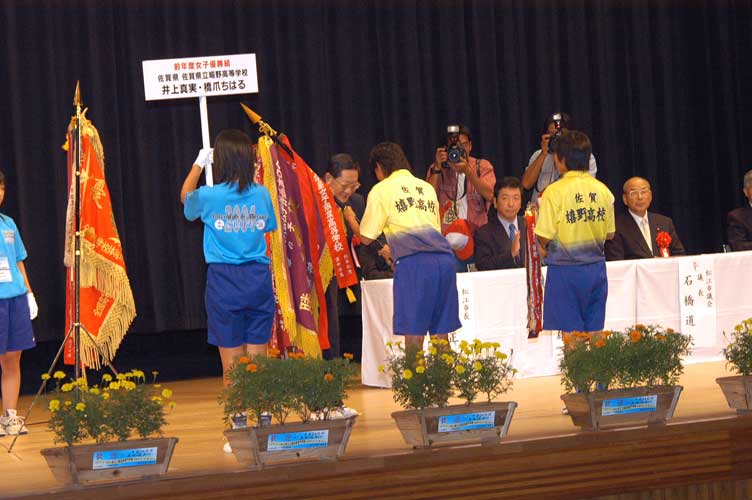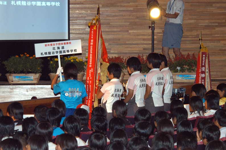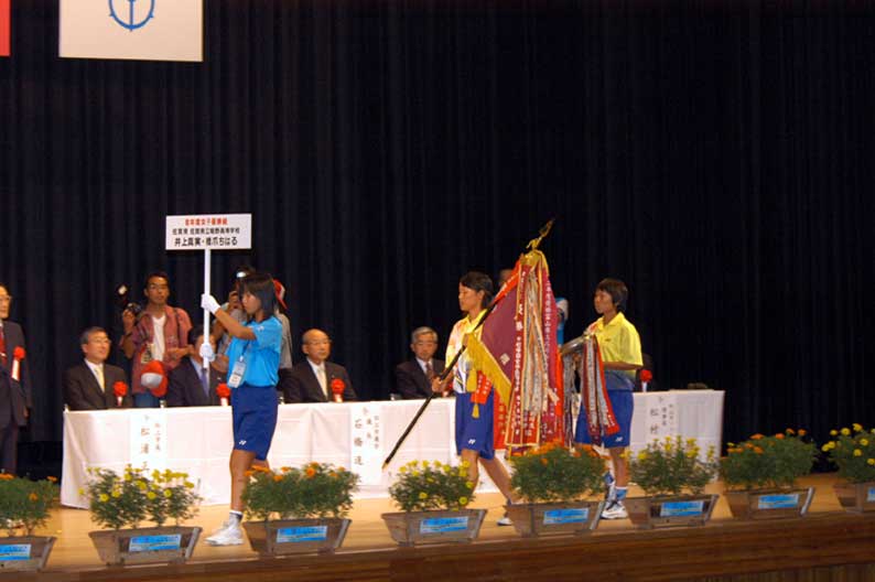 前年度優勝、龍谷の優勝旗返還。タッグには広島女子商業の名が見える