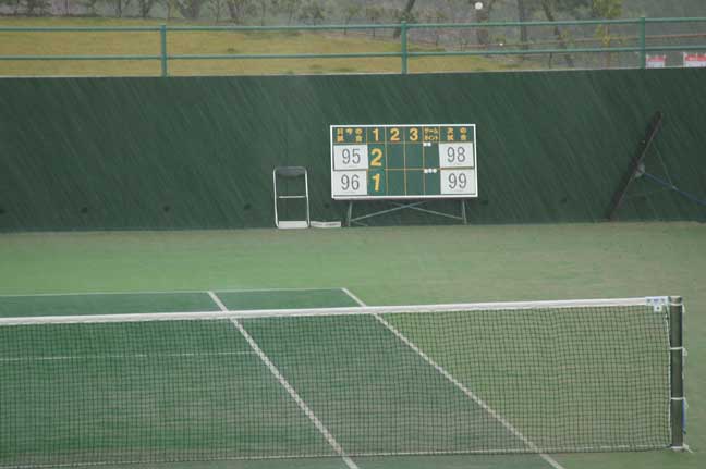 個人戦一日目、台風の影響による激しい降雨で午後から一部の試合が中止