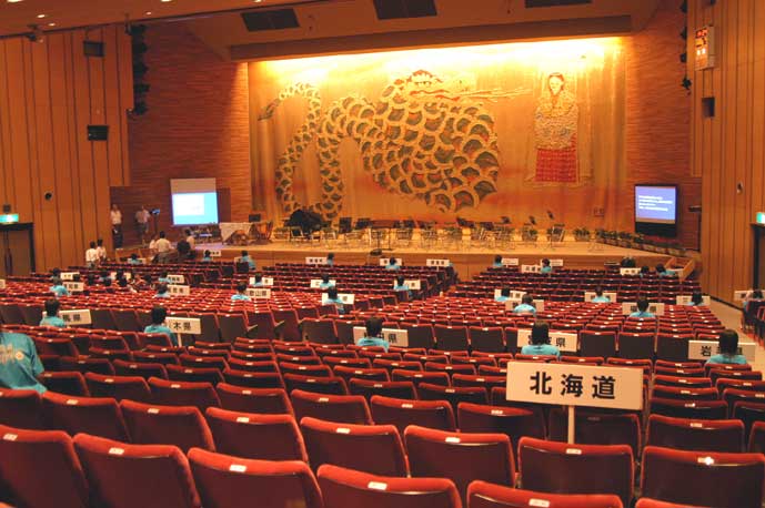 開始を待つ開会式会場、北海道は一番後ろ