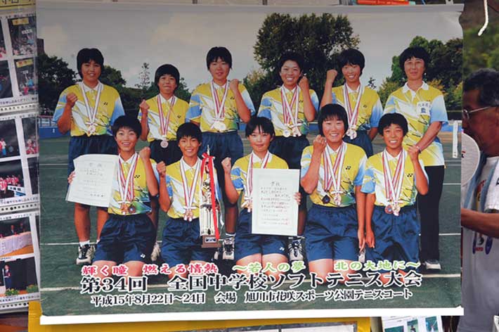 ブース前で取材写真を撮っているのはソフトテニスマガジンでお馴染みの堂崎征三さん
