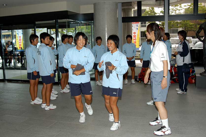 開会式優勝旗返還用のユニホーム(スカート)を持ち、着替えに入る札幌龍谷学園、高塚と谷岡