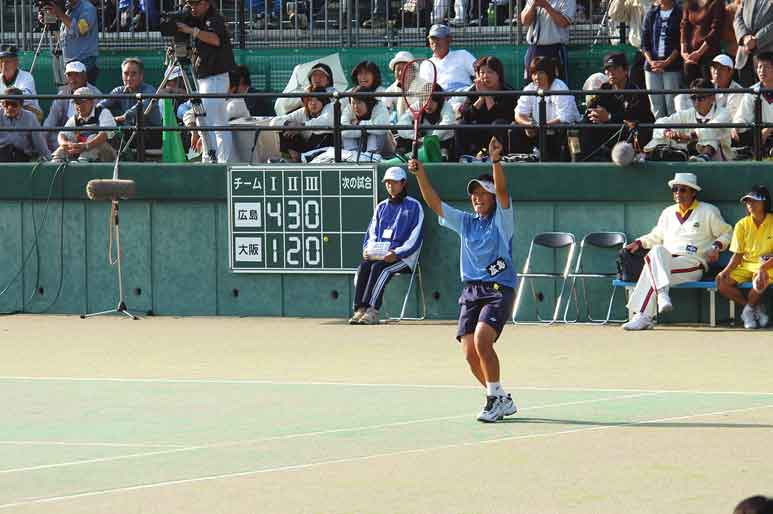 第六ゲーム、0−1からシュートボールで1−1とし喜ぶ新谷 広島勝利の瞬間、控えめながらも二人でがっちり握手 勝利の感激にむせぶ田中と新谷、この一瞬のために今まで戦ってきたのだ、やり終えた者だけに分かる感動の瞬間 嬉しい優勝で広島は静岡国民体育大会に続き2連覇。腕を組みじっと悔しさに耐える大阪・久保田監督、ここまで来れば勝ちたかったと思う 勝利の余韻に浸る広島とがつくり肩を落とす大阪。勝負の世界は常に勝ちと負けで非情でもある