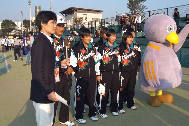 インタビューを受ける少年女子優勝の広島県 少年男子優勝の宮城県チーム 美味しいうどん屋さんは連日行列が 国民体育大会ではお馴染み休憩ブース 開会式終了後、気合を入れる?埼玉県選手団 こちらは北海道選手団の選手紹介 少年女子は一回戦から県のプライドをかけて熱戦が展開 (写真は香川県対福岡県)