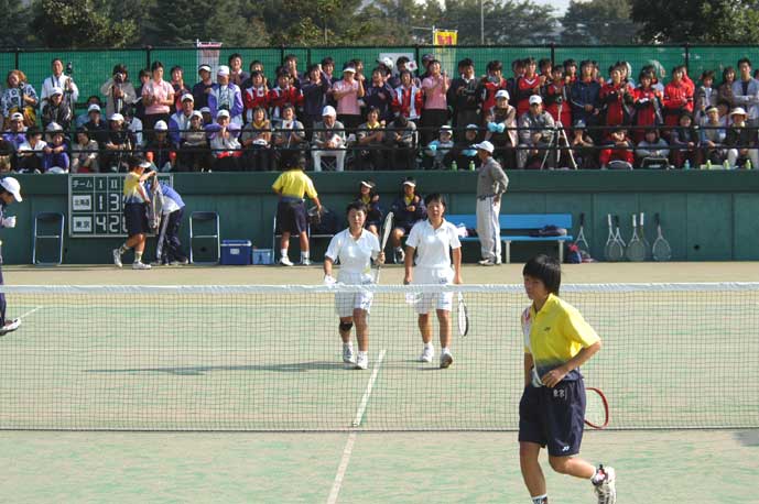 ゲームセット、意気揚々と挨拶に向かう谷岡・渡辺