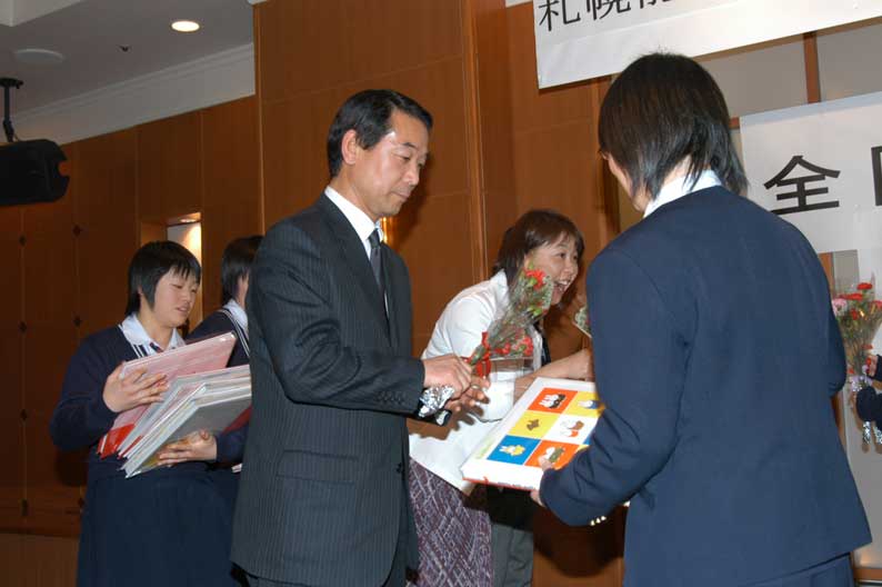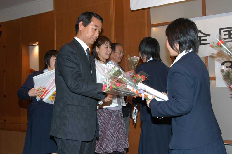 藤堂監督、諏訪コーチ、諏訪トレーナーに感謝の心を花束に託し