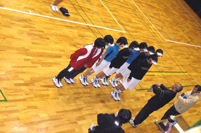 試合前の整列、いざ戦わん。淀之水高校が随分とリラックスしているのは余裕か、それとも関西独特のチームカラーか