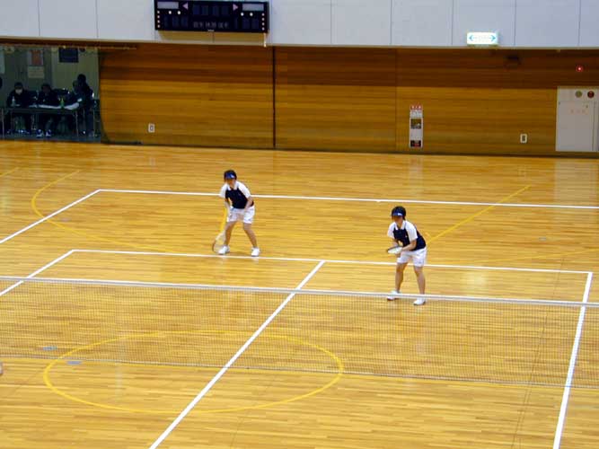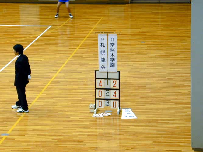 先ずは佐々木・熊林が先勝 続いての第二ゲーム、佐々木・吉田の二年生コンビ 初めての大きな大会で調子が上がらない佐々木・吉田 常盤木学園応援席 結局、佐々木・吉田はゼロ負け いよいよ三番手勝負 しかし、期待の中嶋・木多も敗退、結局は屈辱の一回戦負け