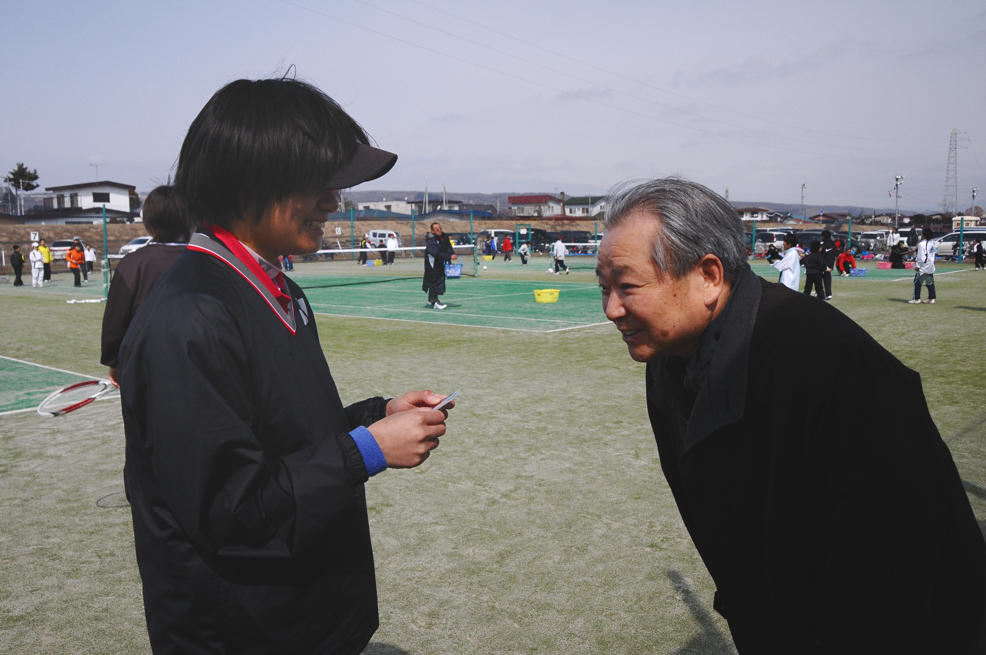 世界レベルの佐々木選手バックボレー、見事に決まる 凄い光景です、五十嵐敏明新ひだか町議会議長(左側)が、頭を下げ佐々木舞にご挨拶。舞も出世した? 広島監督も、この日を心待ちにしていたに違いない。教え子が世界チャンピョン、指導者冥利に尽きるのでは