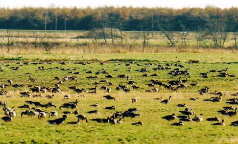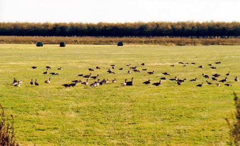 十勝大平原の右に風物詩の豆畑、そして左にオオヒシクイの群れ 折からの強風で大半のガンたちは、風向きに頭を向け背眠や地面にへばりつき風をしのぐ いつもはガンがいない場所で群れを見つけた時はうれしいもの 牧草ロールとサイロが良く似合う十勝のオオヒシクイ(約1,500羽) 浦幌ではよく出会うタンチョウ。清楚なスタイルと羽根はいつ見ても美しい