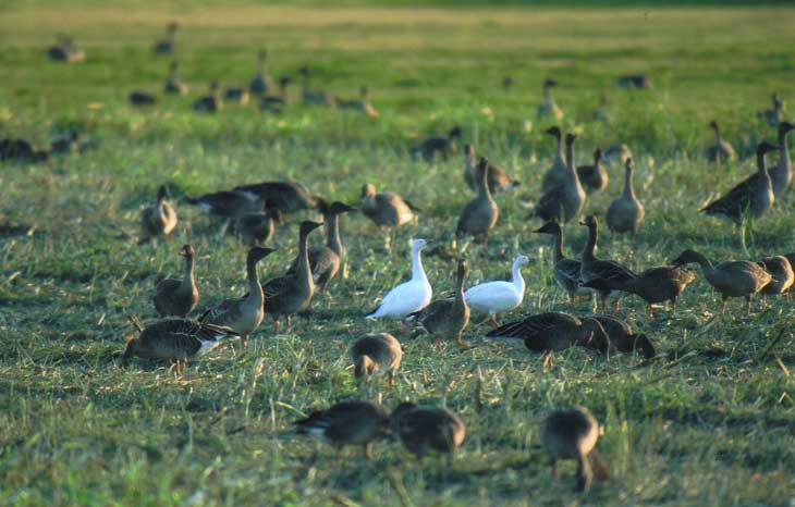 この日確認したハクガンは2羽とも成鳥であった。例年だと4羽〜7羽