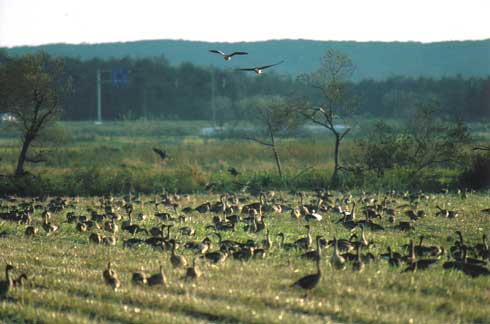 的はオオヒシクイの標識鳥を一羽でも多く見つけて来ようと静内町を出