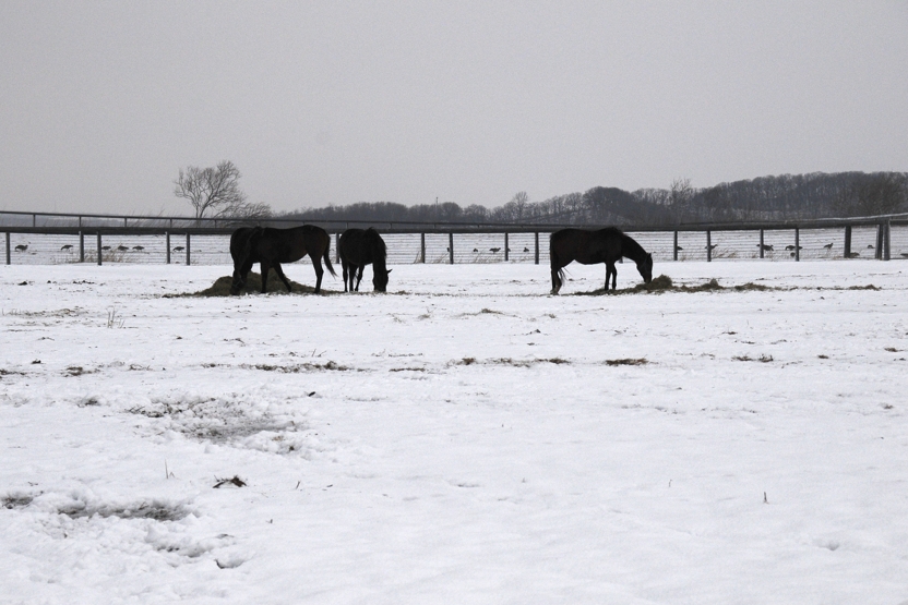 1.27、浦河町東栄地区で採食するマガン幼鳥2羽