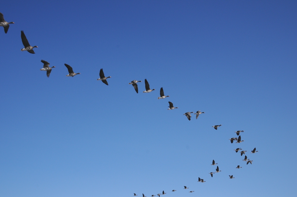13:05〜新冠町、隆栄牧場上空を東より西方向へ通過するマガン23羽をT氏奥様が確認。