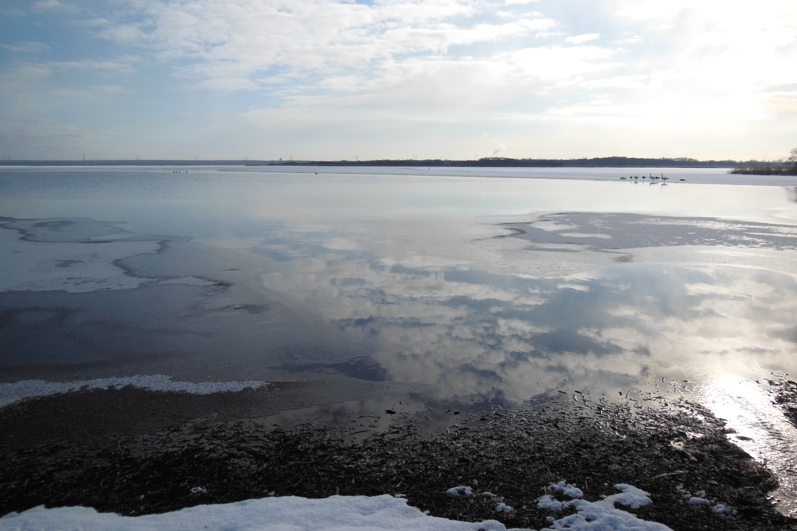 1,150羽以上も確認されていたが、15日、約90%が結氷、それまでのんびりしていた水鳥たちもたまらずに南下した。