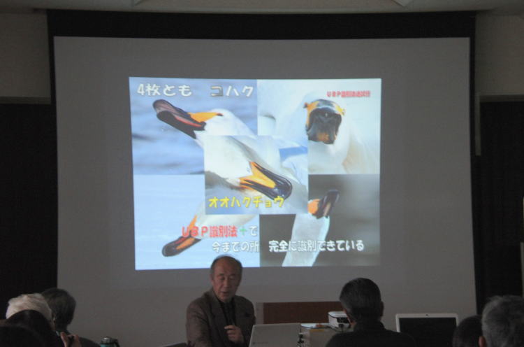 毎年、ハクチョウ研究を発表される酒田市の角田さん、今回は「ハクチョウの生態を追うvol7」
