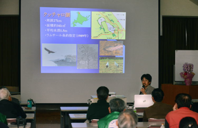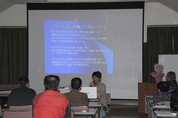 この日のトップは、谷岡副会長の水鳥(オジロワシ・オオワシ)の生態とフライウエイについて