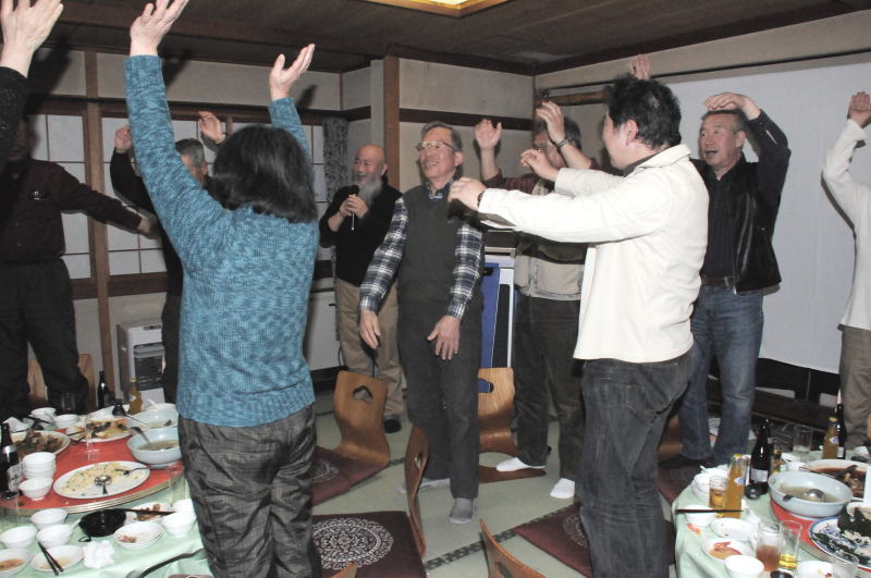 会の発展を願い、佐久間理事(福島県)の音頭で万歳三唱