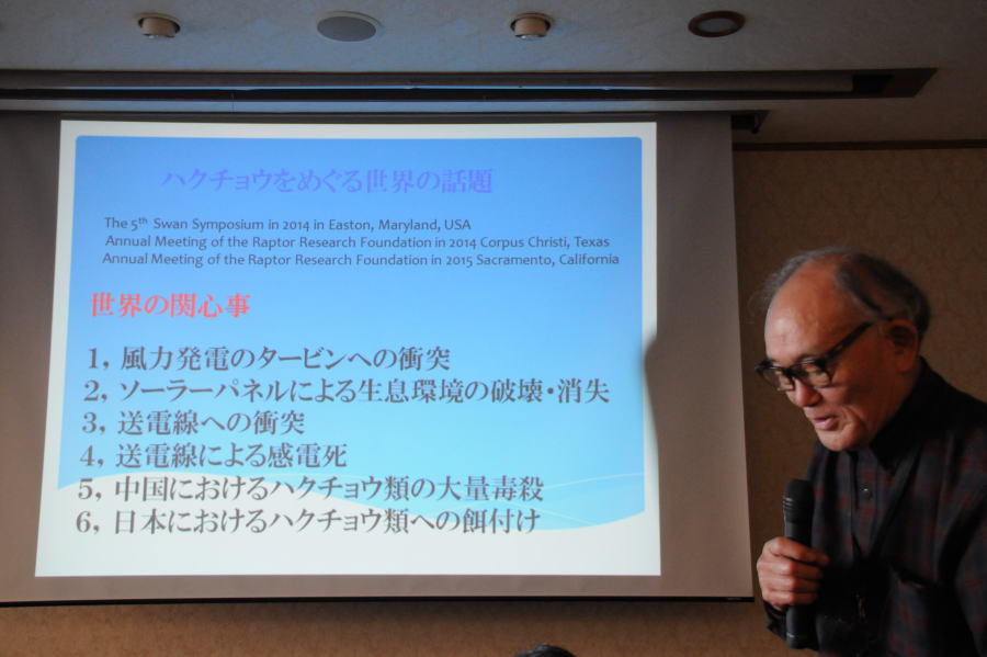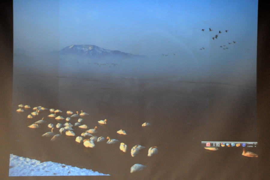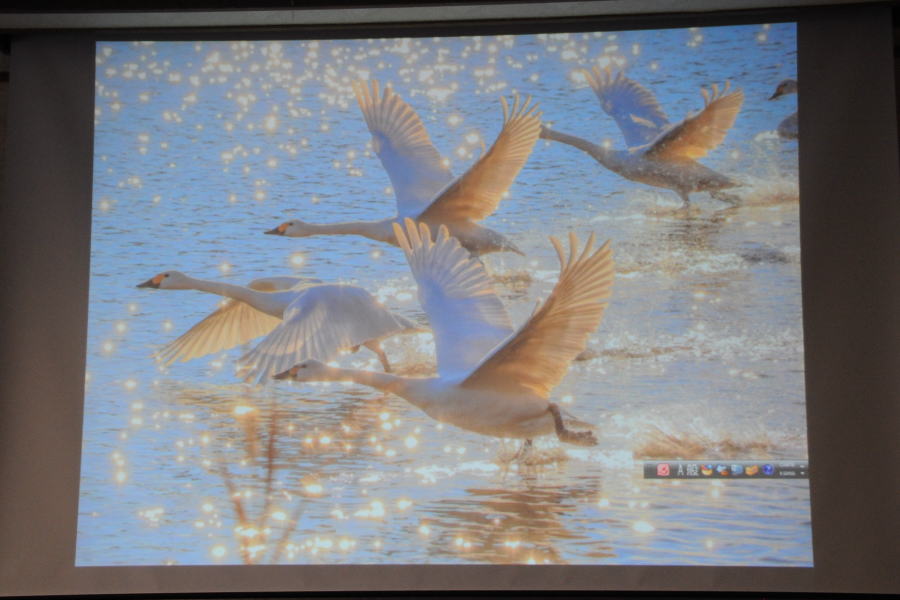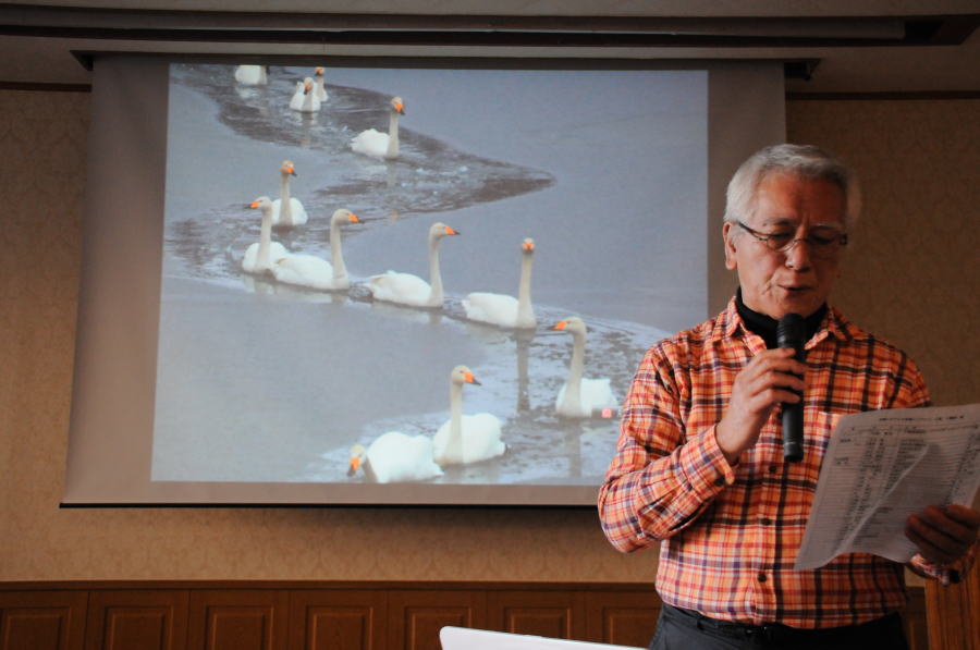 ⑷.全国白鳥写真展について~小原王明(新潟県) 昨年実施された写真展には全国から300点の応募があり、今回はその受賞作品を紹介 ⑸.白鳥をめぐる昨今の話題~阿部 學(東京都) 阿部副会長からは世界各地のハクチョウの話題 エネルギー政策の変遷は誤算の歴史?