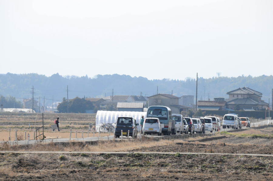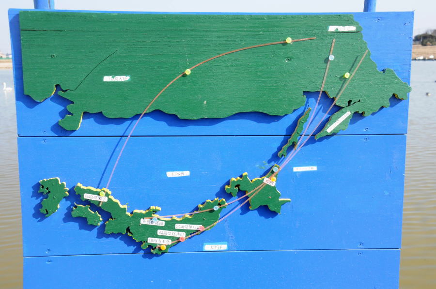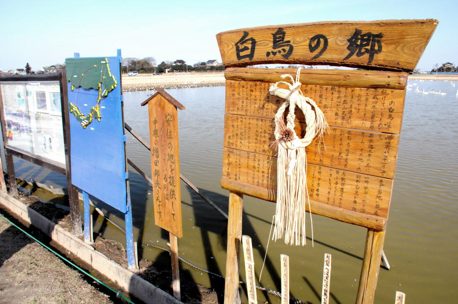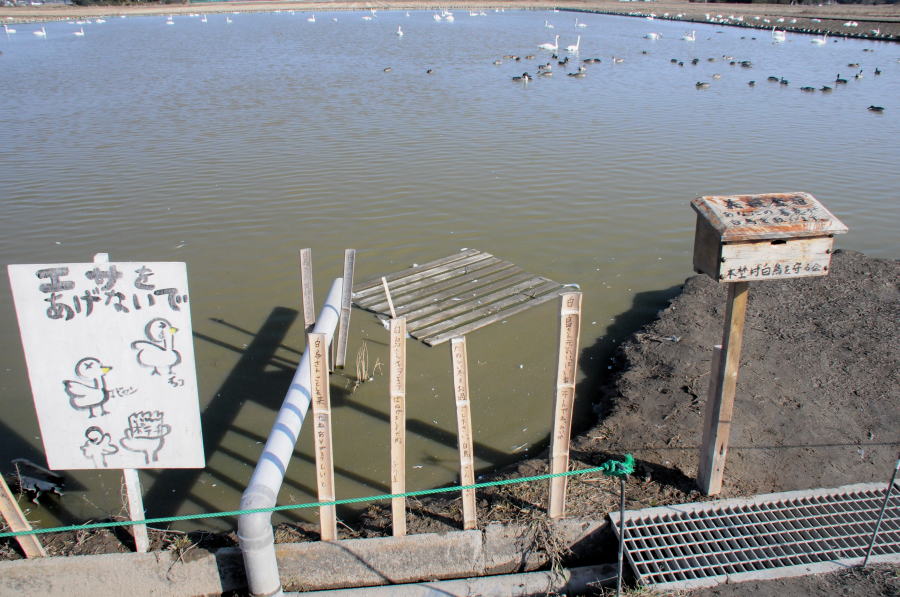 さすが首都圏、多い日は一日に何千人もの人が来るとのこと。 水田の隣にはお団子、お菓子、小魚と売店が並びまるで移動 スーパーの様相。 残念ながら人気者のアメリカコハクチョウは姿を見せなかっ たが、賑わいと活気のある白鳥渡来地でした。
