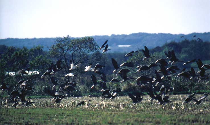 で100羽にも満たない数でした。周辺の状況は、餌となるトウモロコシ畑がまだ未収穫で