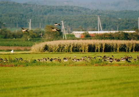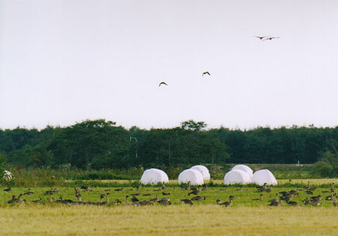 た、絶対数そのものが少ないのか、いつもの牧草地に群れるオオヒシクイ
