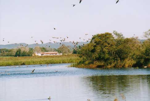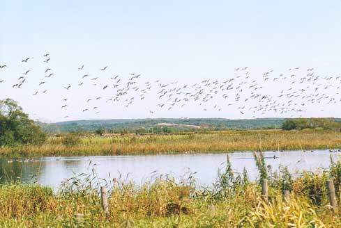 最盛期と比較すると群れは少ないが、ガガッというあの独特の鳴き声 を半年ぶりに聞き、懐かしかった。一時間程、沼面上にいたがやがて 一斉に上空へと舞い上がり、迫力ある光景を目の辺りにすることが出 来た。この日はオオヒシクイが三日月沼に大半が集中していた。