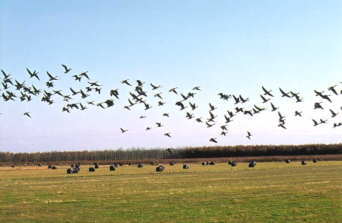 僅かに10羽程度に留まるなど、秋季の初めはこの地区でも多くのガンを観